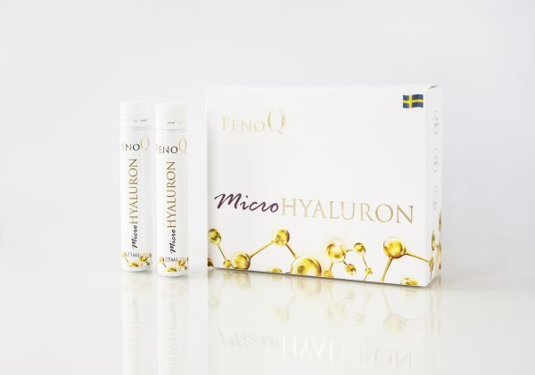 • Naujos kartos alternatyva grožio injekcijoms ir kremams. Dar neseniai odą atjauninti galėjome tik pas grožio chirurgijos specialistus, susileidęhialurono rūgšties injekciją. Deja, bet šis būdas brangus, sudėtingas, dažnai sukeliantis patinimus ar mėlynes. Vėliau pradėti naudoti hialurono rūgšties kremai nuvylė efektyvumu, kadangi jie veikia tik paviršinį odos sluoksnį.„FenoQ Micro Hyaluron“– skystos formos geriamas hialurono preparatas sukurtas taip, kad hialurono pasisavinimas būtų efektyvus, greitas, paprastas ir nesukeliantis jokio šalutinio poveikio.